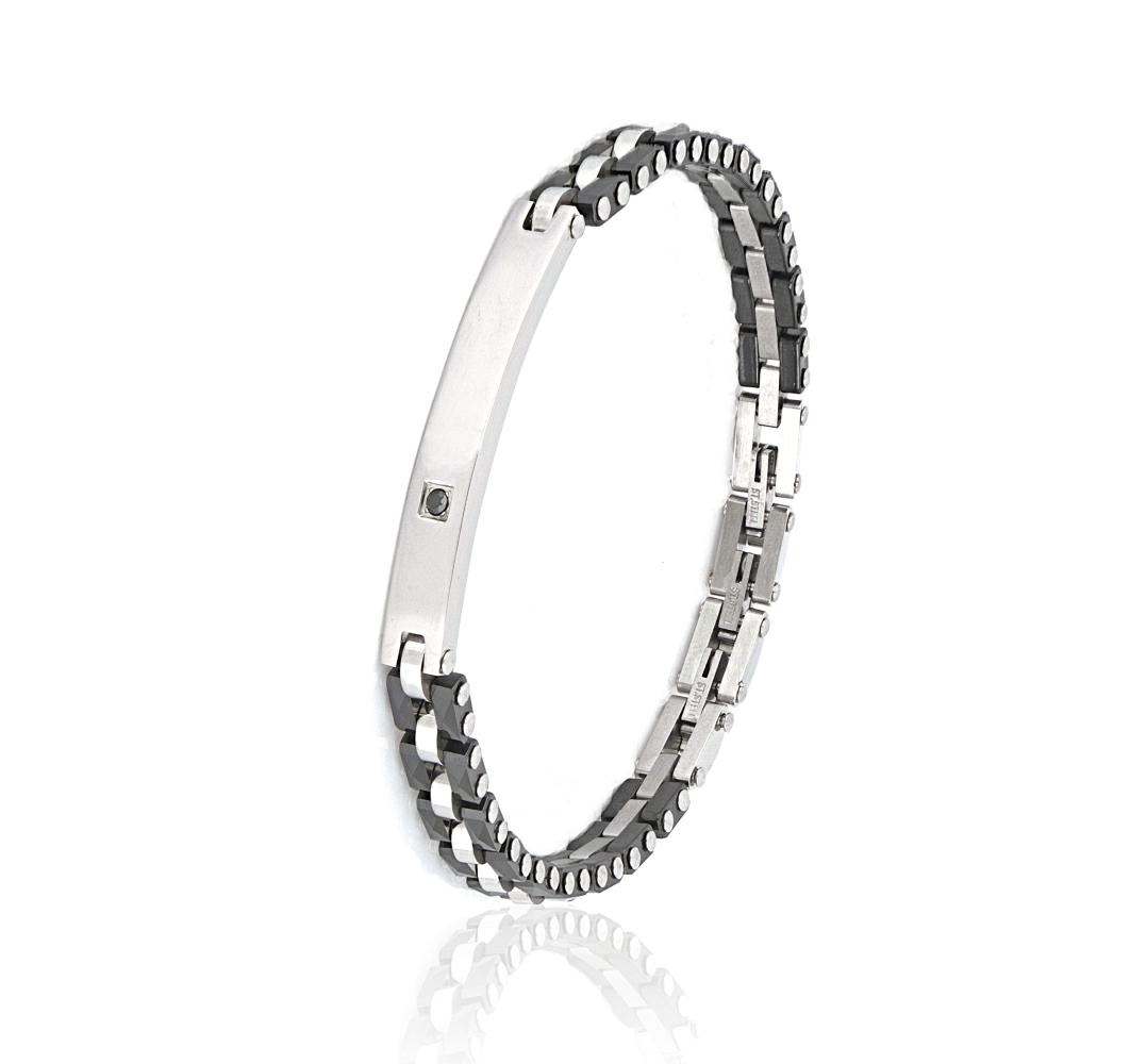 BRACCIALE ACCIAIO CON TARGA E ZIRCONE NERO