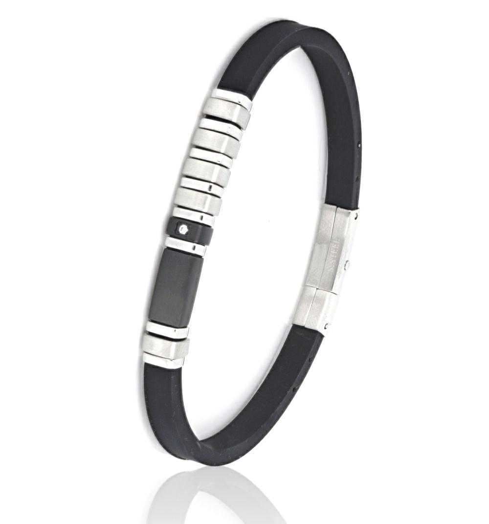 BRACCIALE ACCIAIO E CAUCCIU' CON ZIRCONE