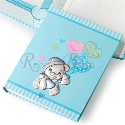 ALBUM PORTAFOTO CM 15X20 CON PLACCA IN ARGENTO PVD CON ORSETTO SMALTATO.
