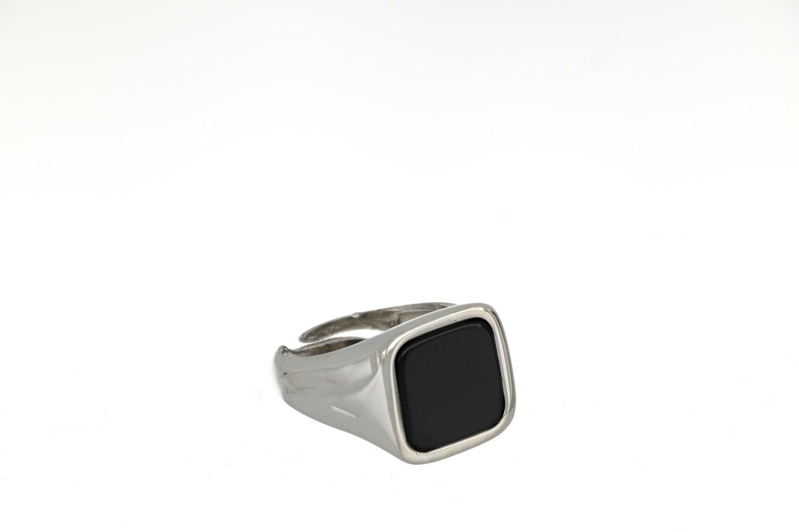 ANELLO RODIATO QUADRATO CON ONICE NERO ARG.925%