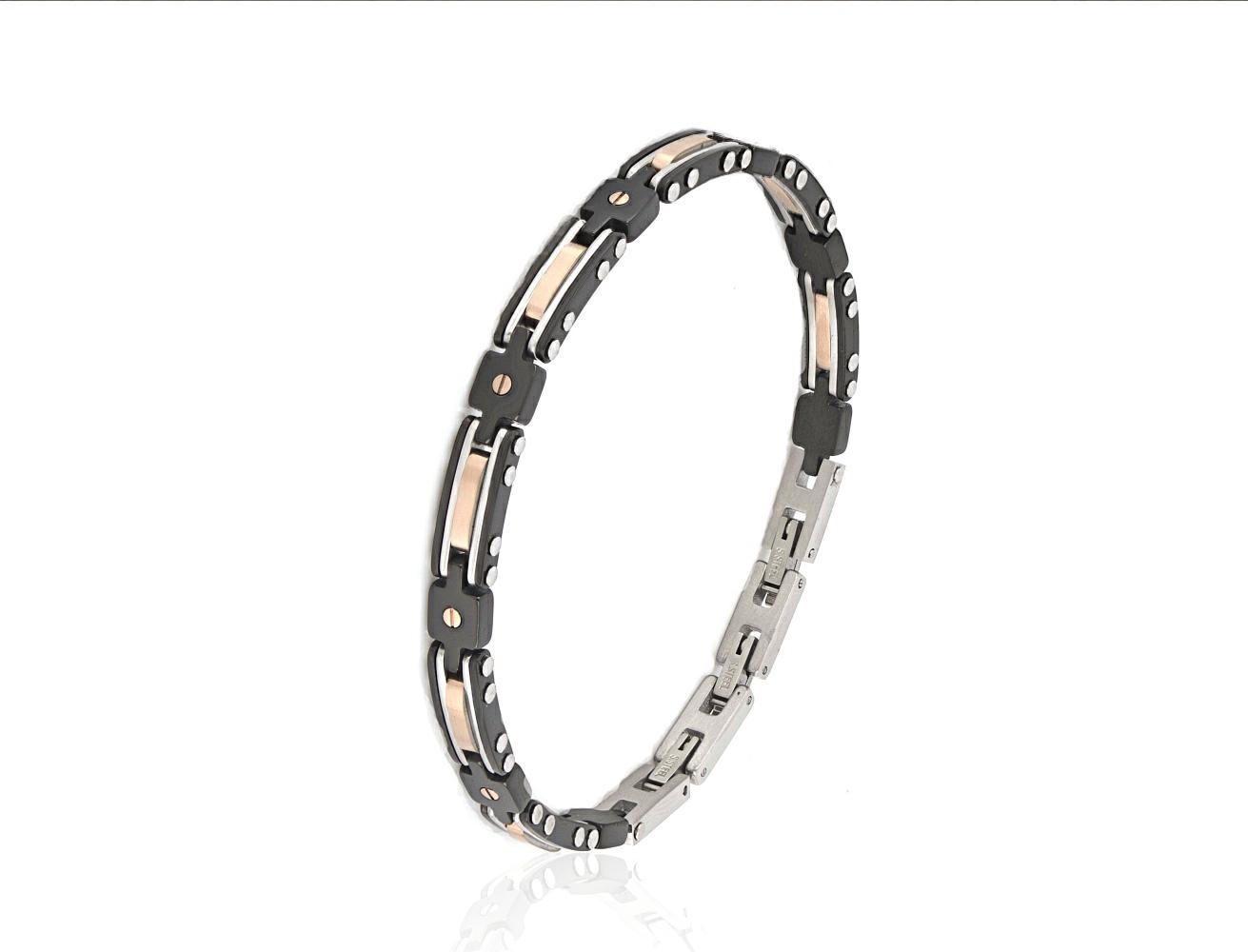 BRACCIALE ACCIAIO CERAMICA NERA E RAME