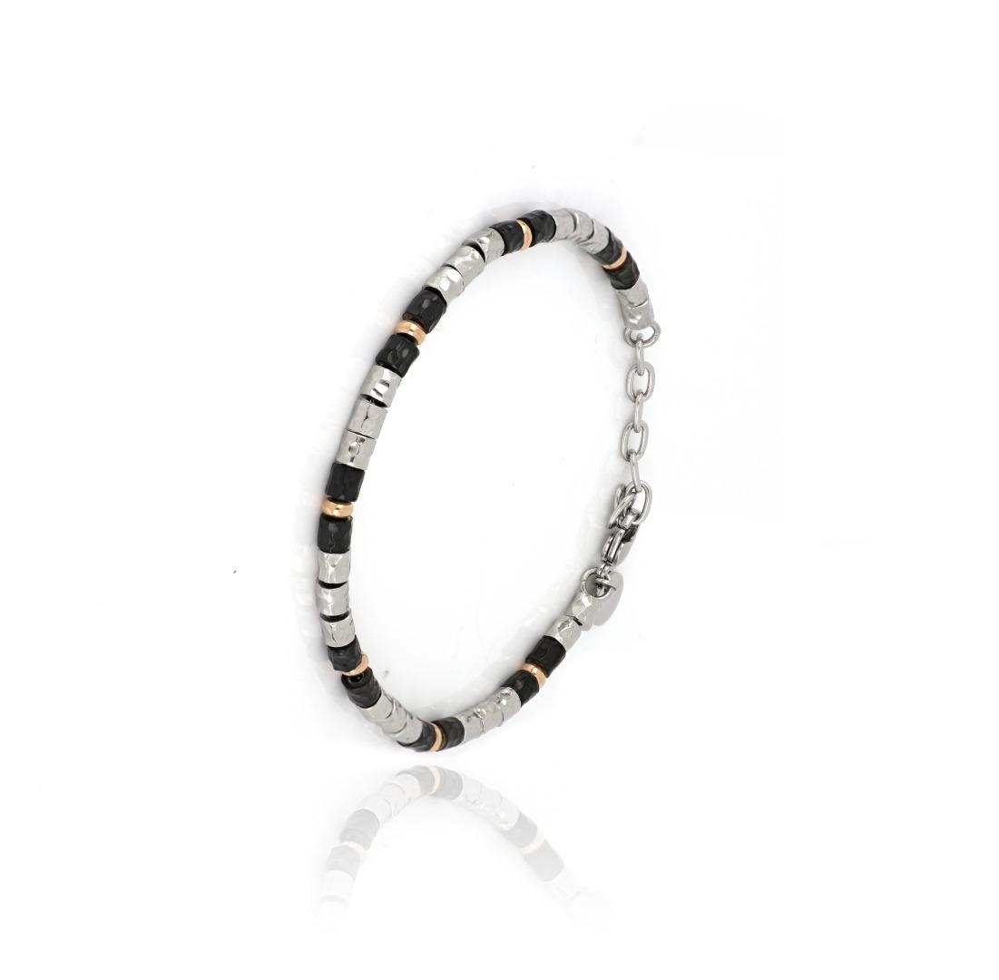 BRACCIALE ACCIAO CON ELEMENTI NERO E RAME
