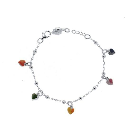 BRACCIALE BIMBO ARG BIANCO CON CUORI SMALTATI