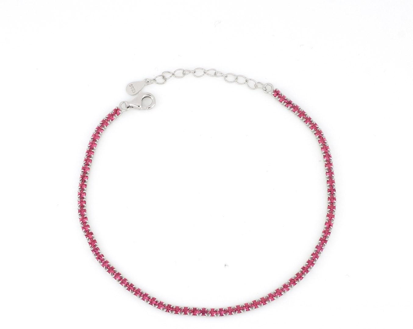 BRACCIALE TENNIS 2mm 17cm+3 RODIO PIETRE ROSSE