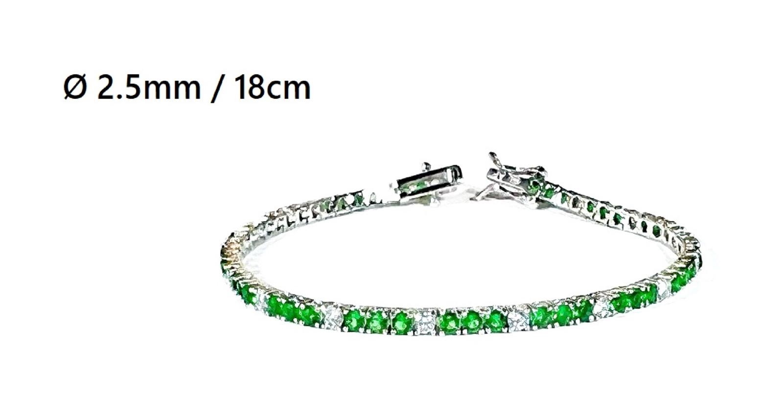 BRACCIALE TENNIS ROD CON PIETRE BIANCHE E VERDI 2.5MM 18CM