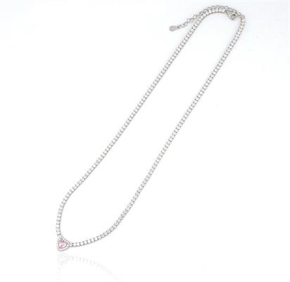 COLLANA TENNIS CUORE ROSA cm40+5 ARGENTO 925