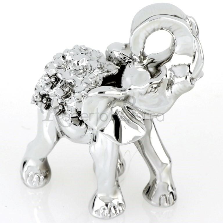 ELEFANTE DECORATO IN BIANCOSPINO H 8 CM IN RESINA LEONARDO ARGENTI .