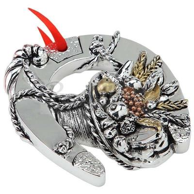 FERRO DI CAVALLO CON CORNUCOPIA IN RESINA LEONARDO ARGENTI CM 10 CON DETTAGLI DIPINTI A MANO.