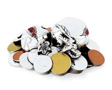 MELOGRANO SU BASE CON MONETE H 8 CM DI LEONARDO ARGENTI IN RESINA ARGENTATA .