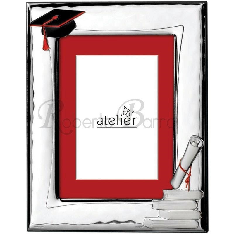 CORNICE PORTAFOTO LAUREA ATELIER CM 10X15 IN ARGENTO PVD CON DETTAGLI SMALTATI. RETRO IN LEGNO.