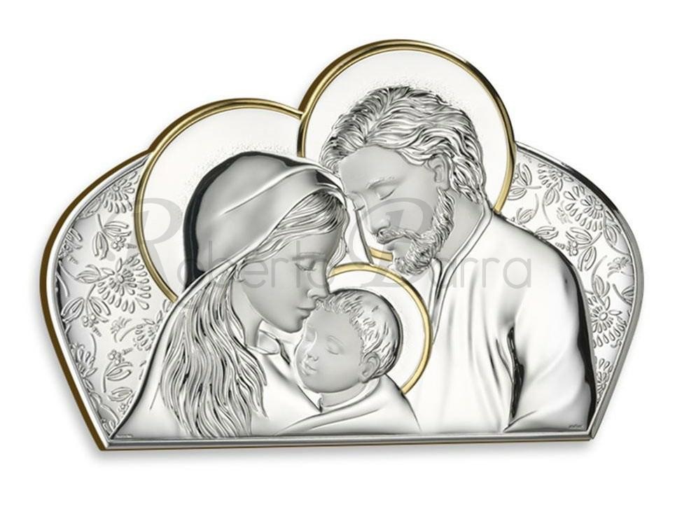 ICONA ATELIER SACRA FAMIGLIA CM 32X47 IN ARGENTO PVD CON INSERTI DORATI, RETRO IN LEGNO.