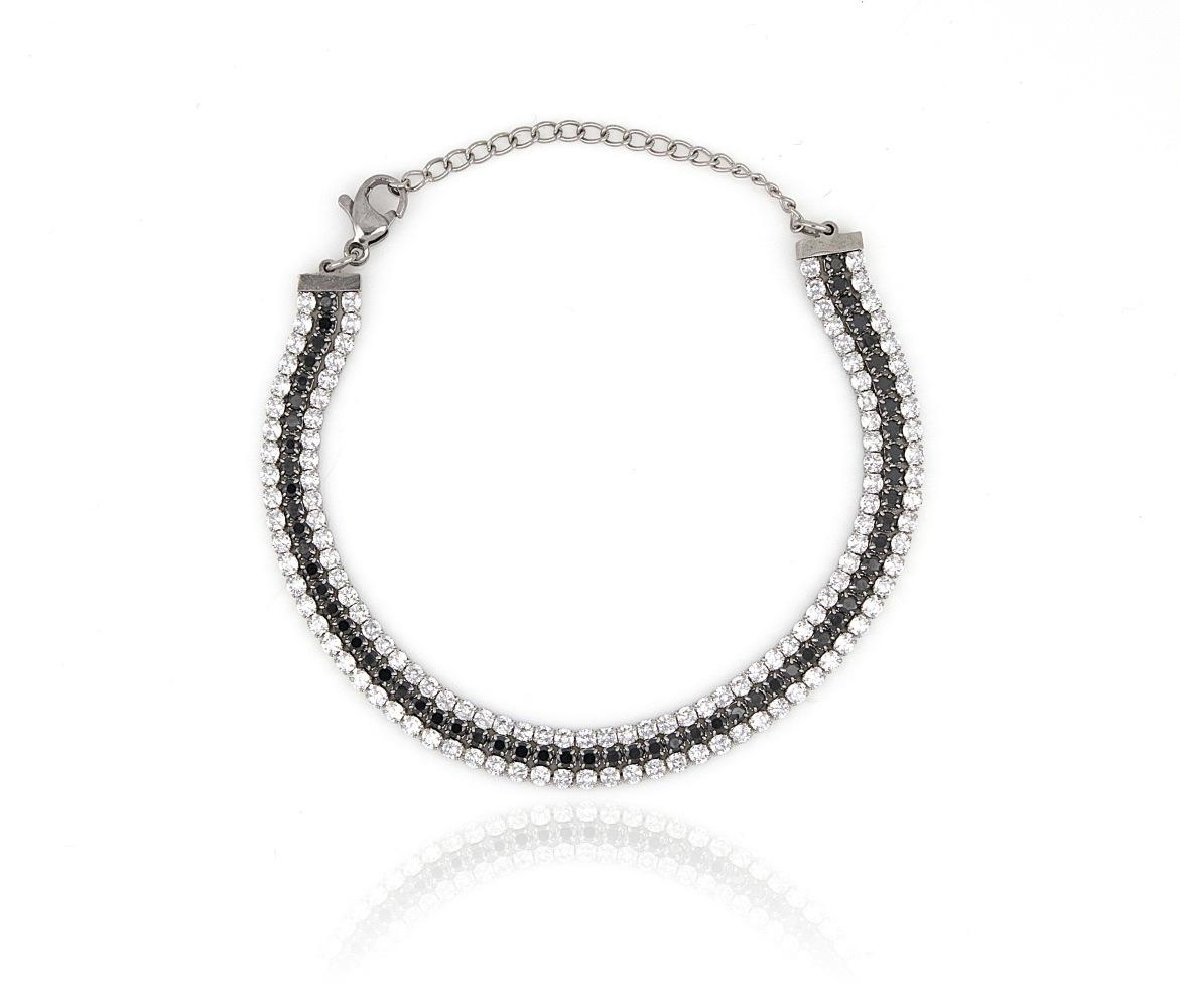 BRACCIALE TENNIS 3FILI ACCIAIO PIETRE WHITE E NERE