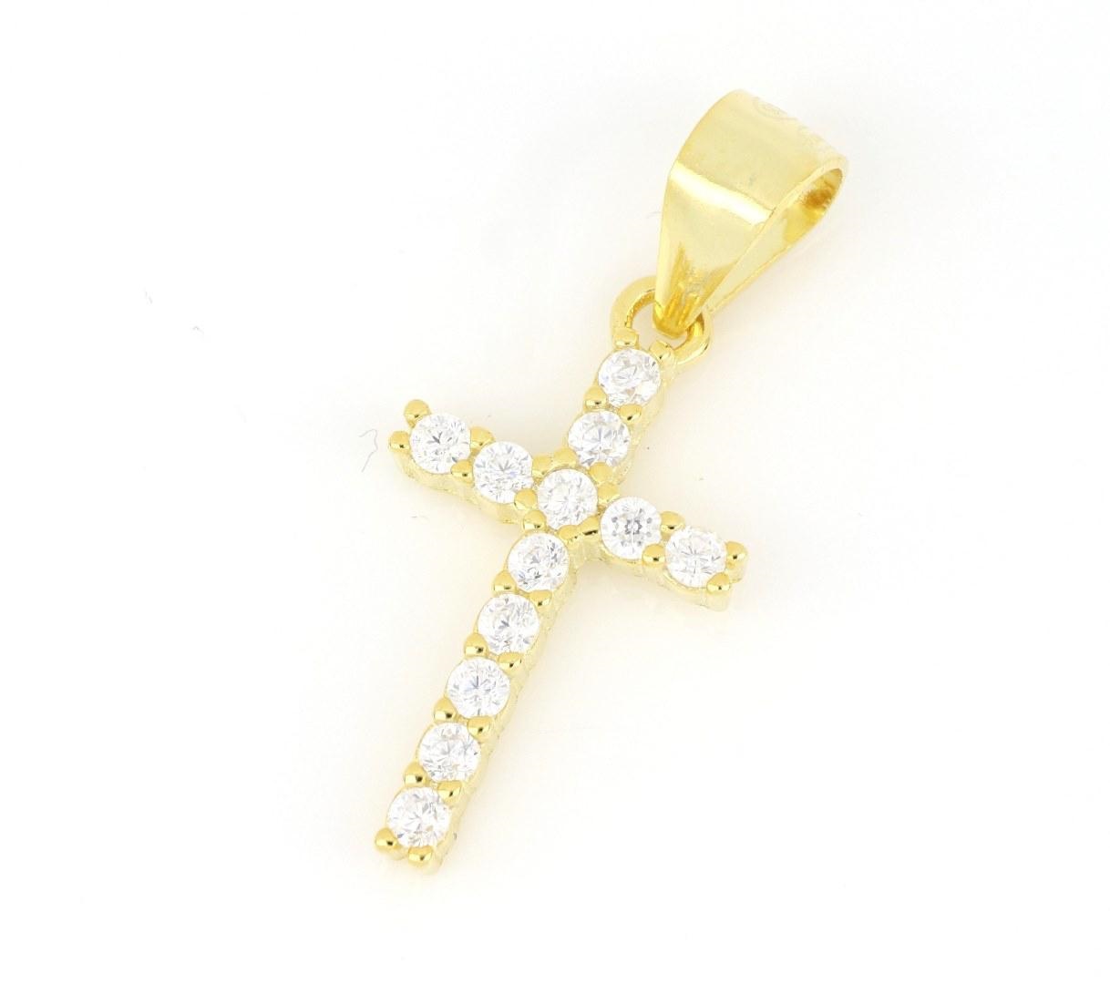 CIONDOLO CROCE cm2 DORATO ZIRCONATO ARG 925