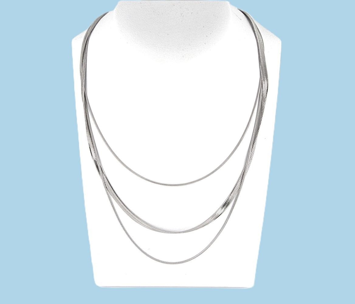 COLLANA ACCIAIO DONNA 3 FILI CODA DI TOPO E PIATTINA