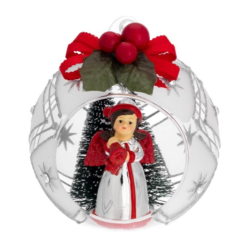 SFERA D. 10 DECO ARGENTO CON ALBERELLI E FIOCCO ANGELO CUO