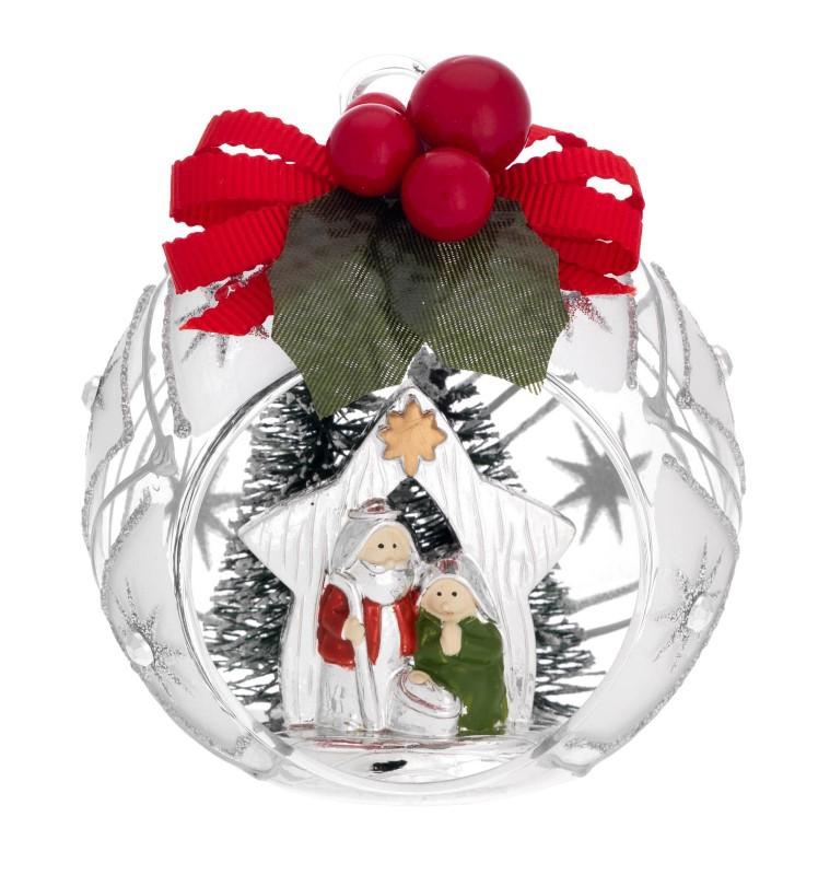 SFERA D. 8 DECO ARGENTO CON ALBERELLI E FIOCCO - PRESEPE