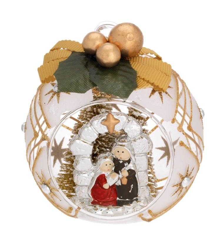 SFERA D. 8 DECO ARGENTO CON ALBERELLI E FIOCCO - PRESEPE