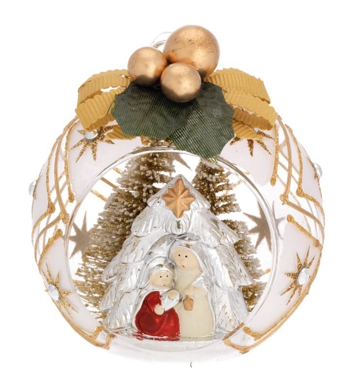 SFERA D. 8 DECO ARGENTO CON ALBERELLI E FIOCCO - PRESEPE