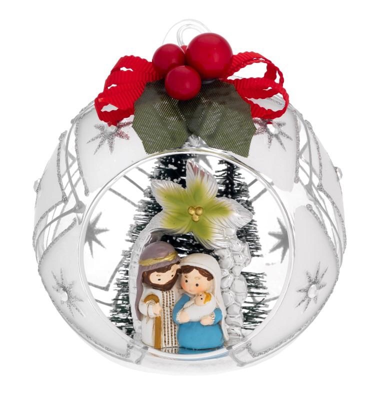 SFERA D.10 DECO ARGENTO CON ALBERELLI E FIOCCO - PRESEPE