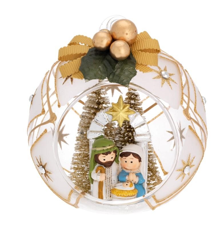 SFERA D.10 DECO ARGENTO CON ALBERELLI E FIOCCO - PRESEPE