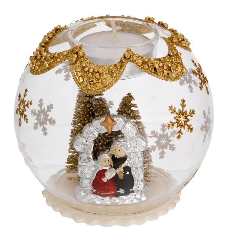SFERA TEALIGHT D. 10 DECO ARGENTO CON ALBERELLI - PRESEPE