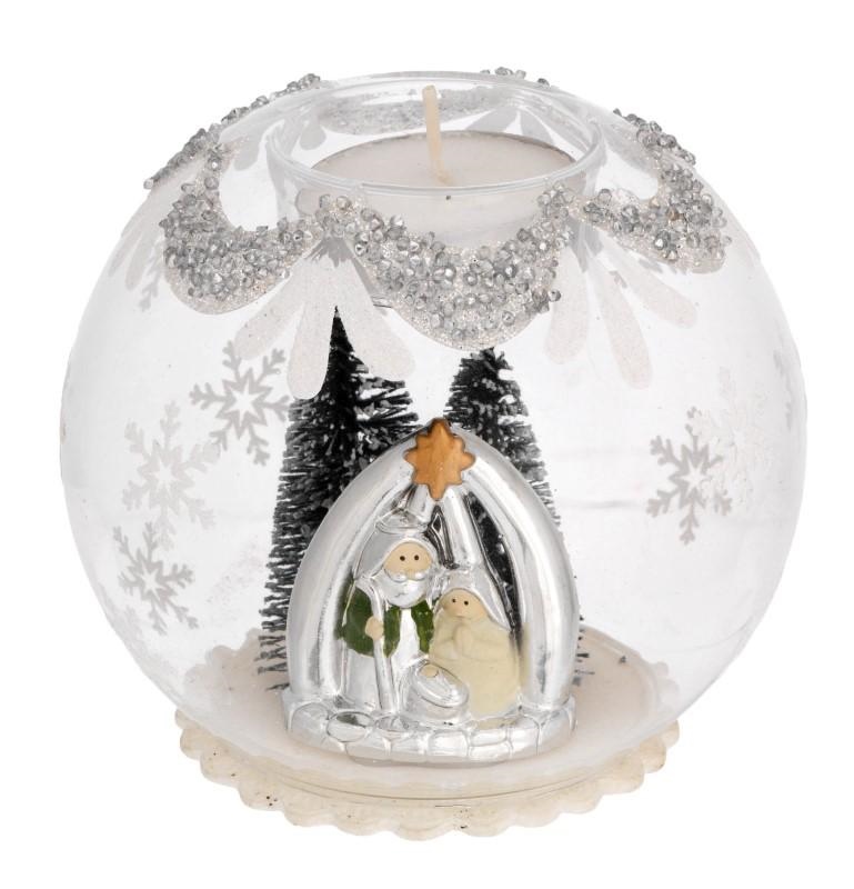 SFERA TEALIGHT D. 10 DECO ARGENTO CON ALBERELLI - PRESEPE