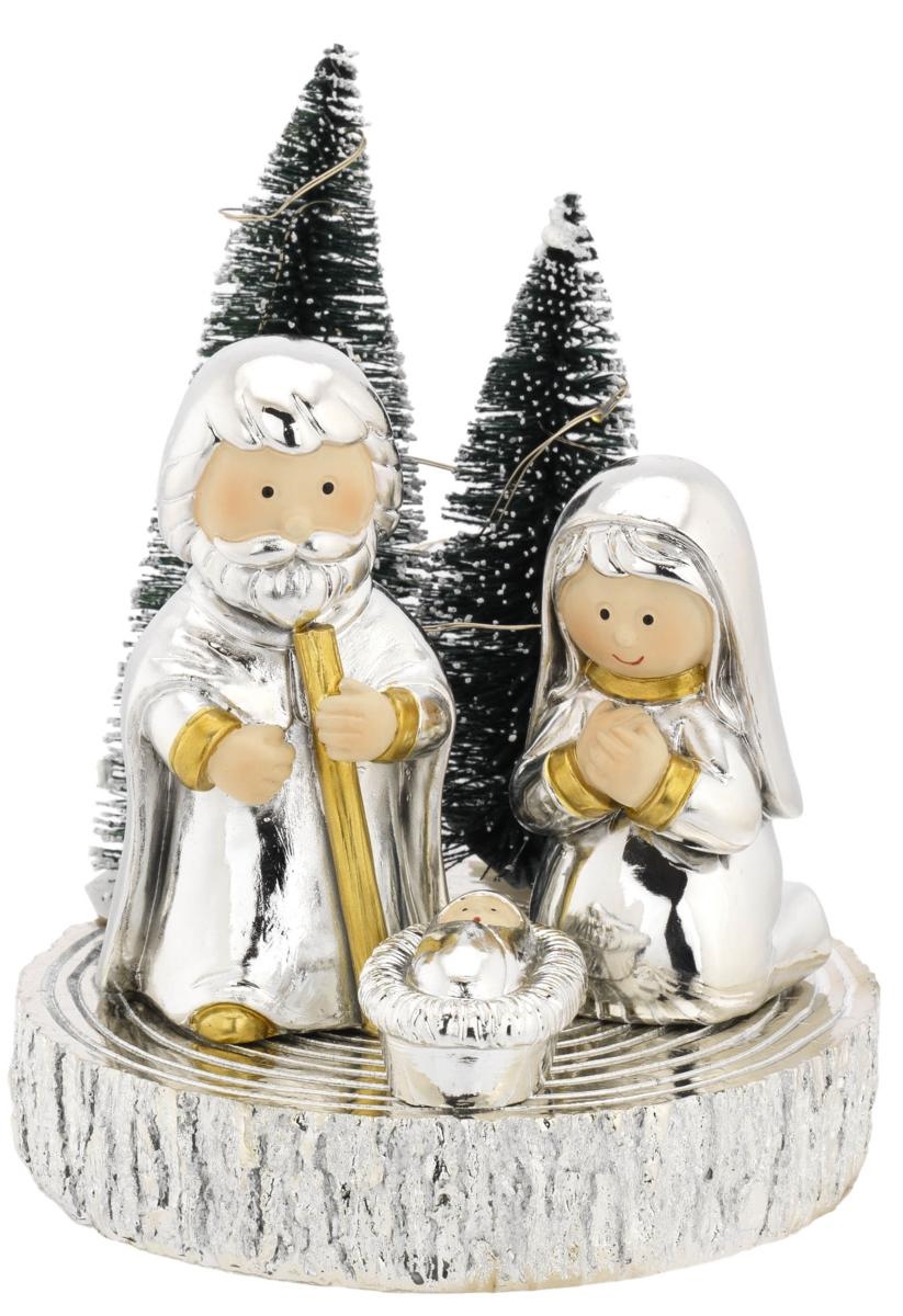 TRONCO D. 13*15 ARGENTO con led e Presepe 3 pzi h. 100 argen